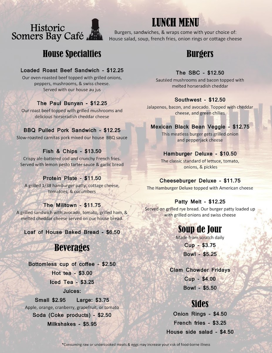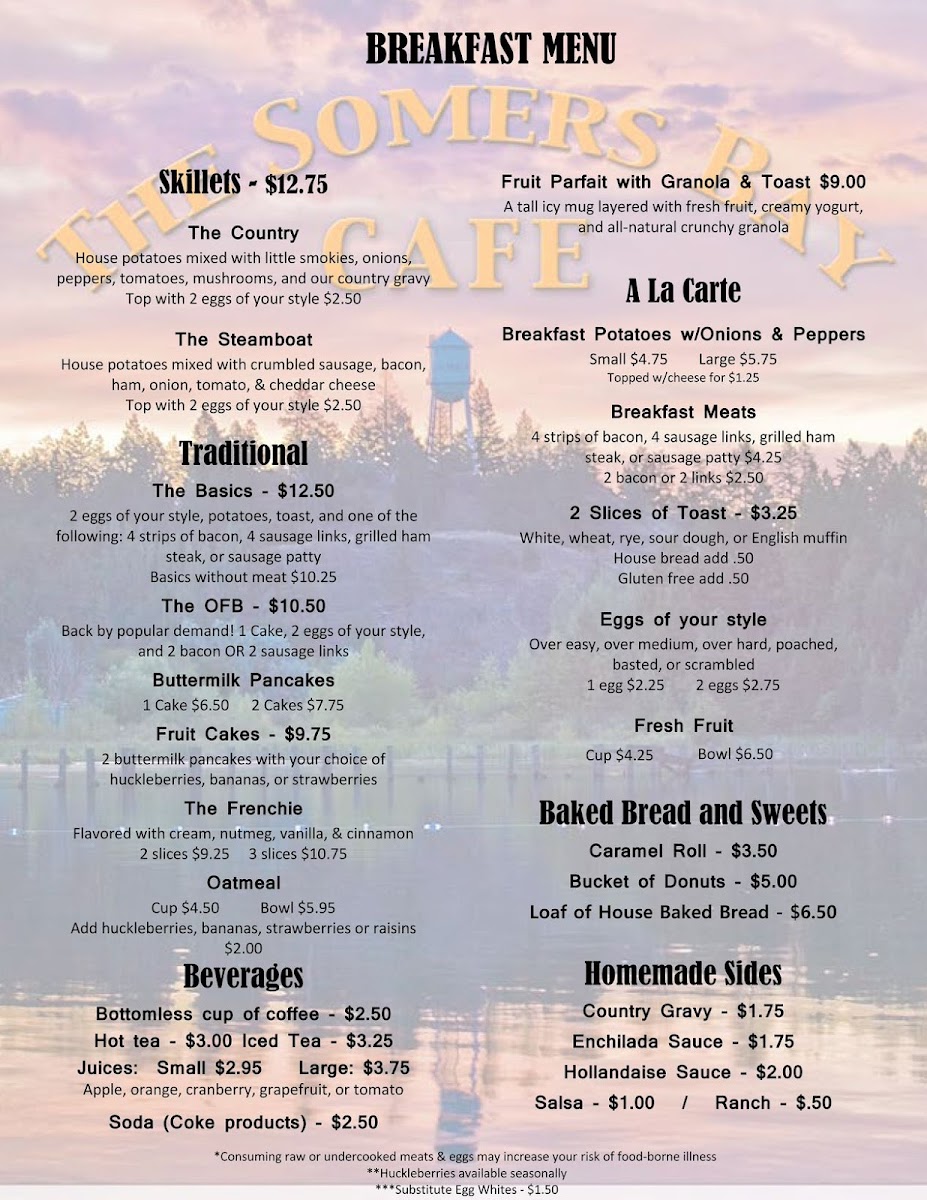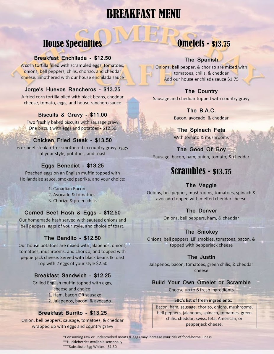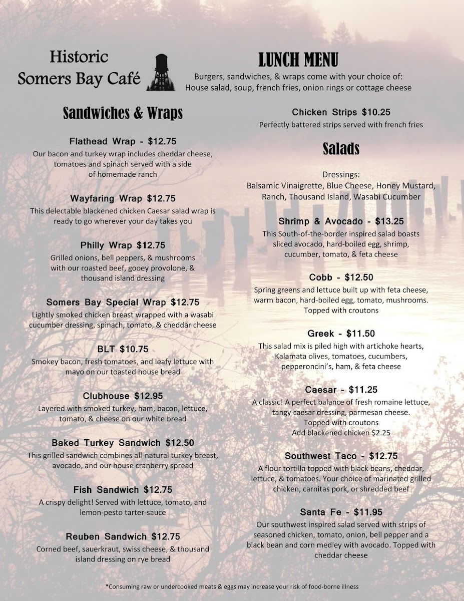 Welcome to Somers Bay Cafe, a delightful spot nestled at 47 Somers Rd in beautiful Somers, Montana. This charming cafe offers a menu that tantalizes with a variety of fresh and flavorful dishes. Start your day with hearty options like the SBC Burger, layered with sautéed mushrooms, bacon, and horseradish cheddar, or indulge in the Mexican Black Bean Veggie Burger for a delightful meatless option.